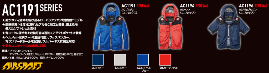 【スタイル】 長袖(AC1191)、ベスト(AC1194)、半袖(AC1196)