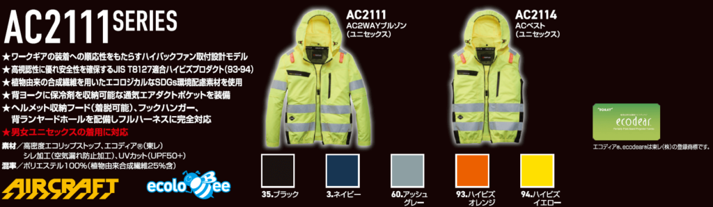 • 高視認性モデル(AC2111)|JIS規格適合の蛍光カラーが新登場。バートルらしいスタイルと現場の安全を両立