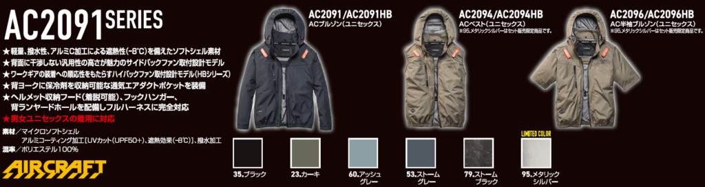 【スタイル】長袖(AC2091)、ベスト(AC2094)、半袖(AC2096)