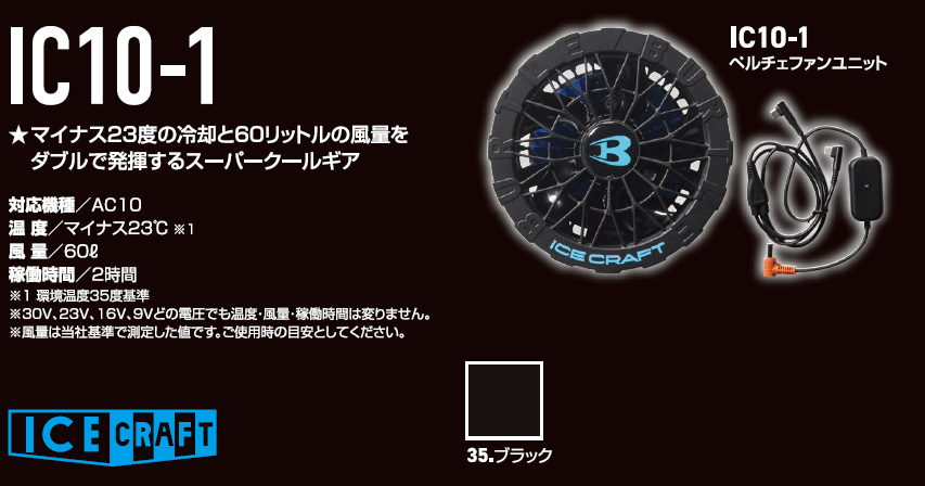 アイスクラフトシリーズ専用のペルチェファンユニットです。身体を効果的に冷却するためのパーツで、対応するベストやバッテリーと組み合わせて使用します。
