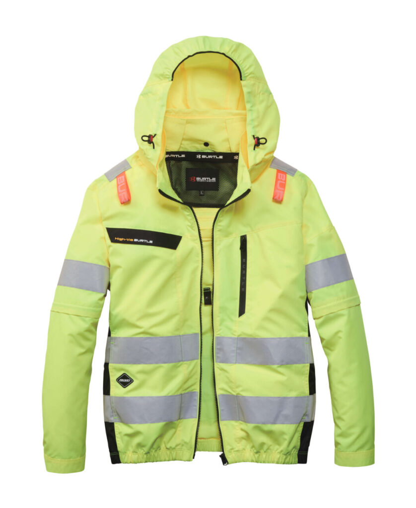 バートル初、JIS T8127適合の「高視認性」エアークラフトが登場しました。 蛍光カラーと再帰反射材が日夜問わず作業者の存在を強調し、接触事故のリスクを低減します。 最大の注目点は、袖を着脱して「長袖・半袖」を使い分けられる2WAY仕様。厳しい安全基準と現場での実用性を両立した、革新的なプロモデルです。